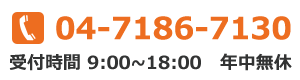 TEL:04-7186-7130 受付時間 9:00~18:00 年中無休